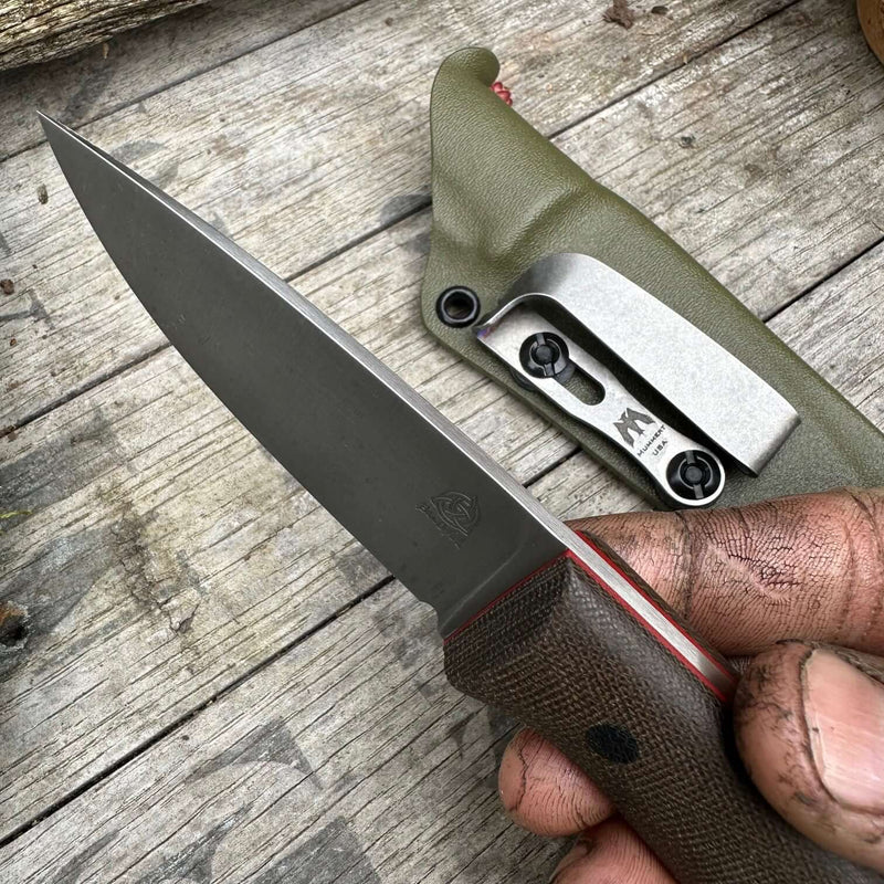 It comes with a OD green Kydex sheath that has a Mummert Titanium pocket clip to allow it to be carried in the pocket it also a paracord neck cord for easy neck carry options.