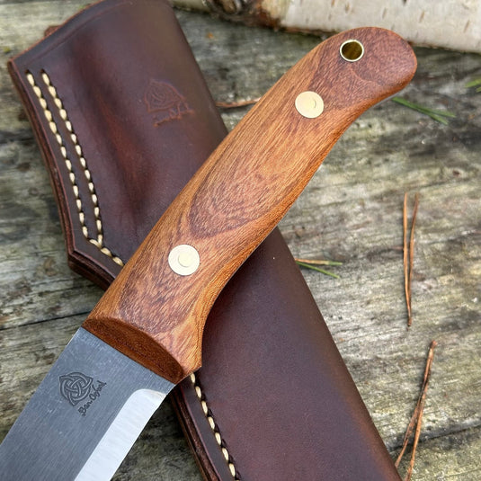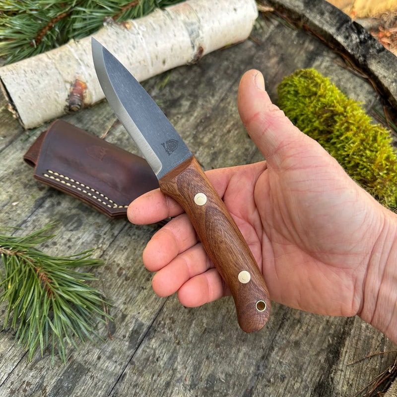 The Woodlander is an essential, all round bushcraft tool. With an iconic design that has journeyed across the globe, the Woodlander has been our trusted blade for over 20 years. Built for the essentials of the wild—food, fire, and shelter—the full-tang construction excels at carving, batoning, skinning, shelter building, firecraft, and all camp chores. A scandi grind with exceptional edge retention ensures precision and control, while remaining easy to sharpen. The contoured handle allows for a secure, comfortable grip even after extended use. Refined through years of testing, the Woodlander has proven its reliability in every environment.