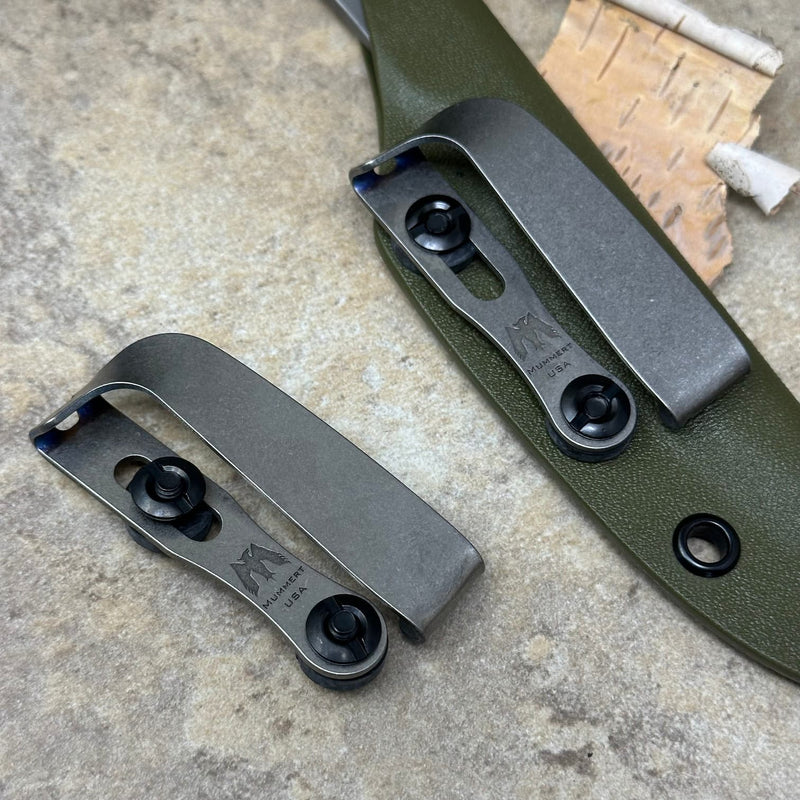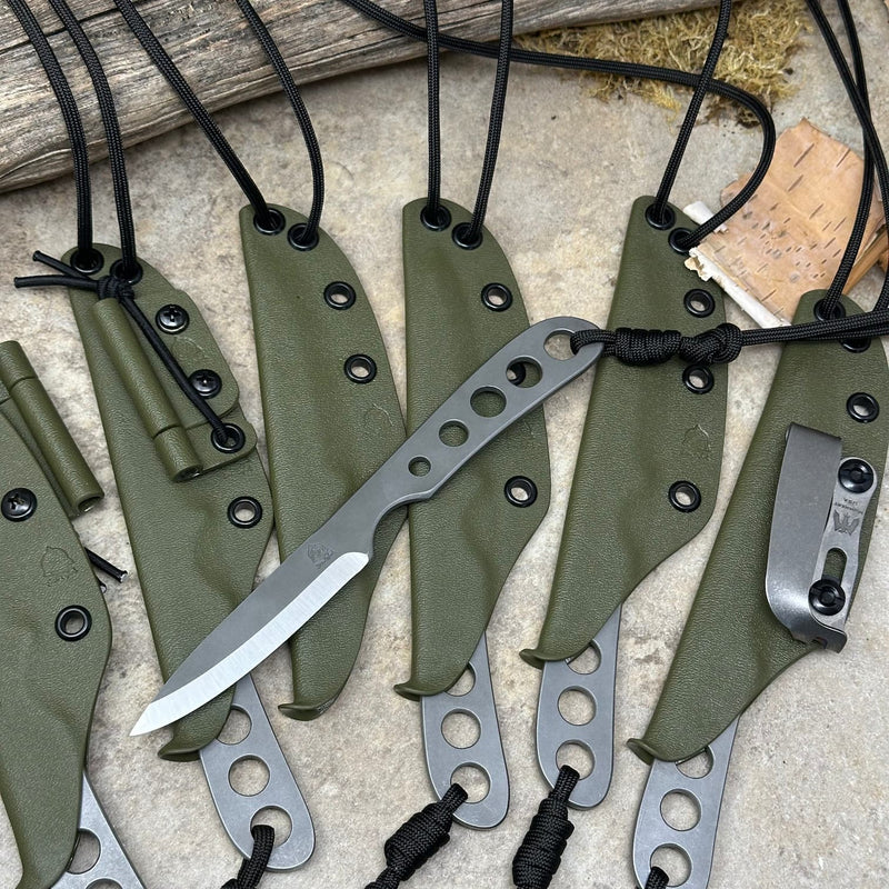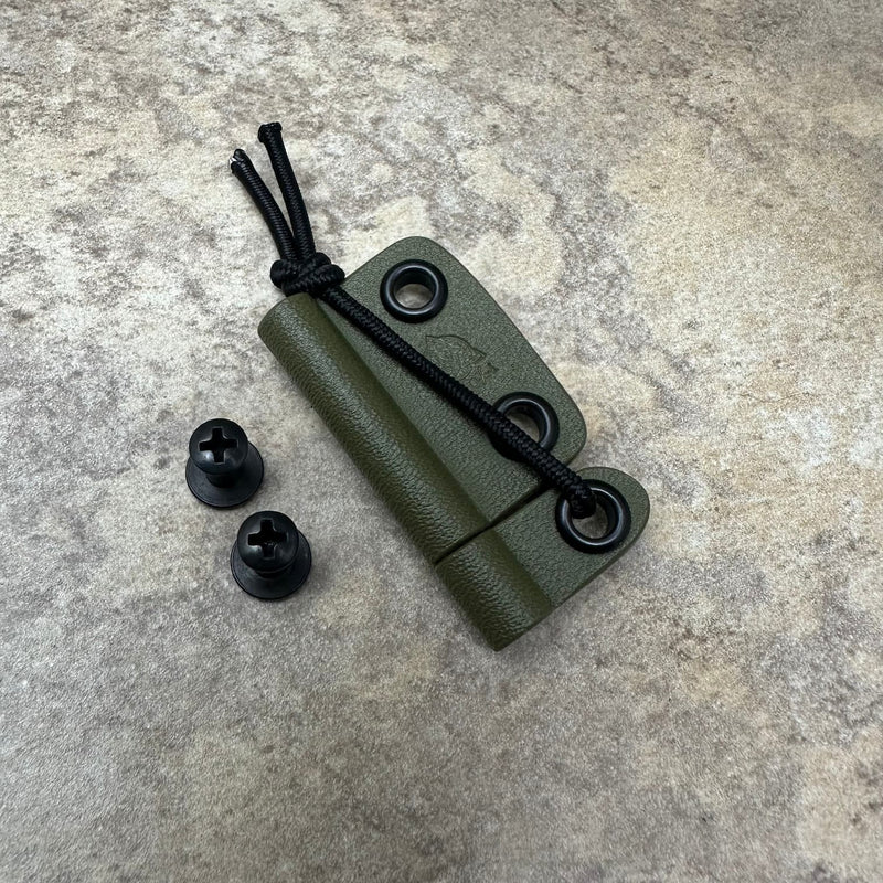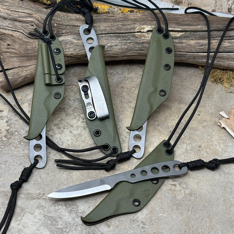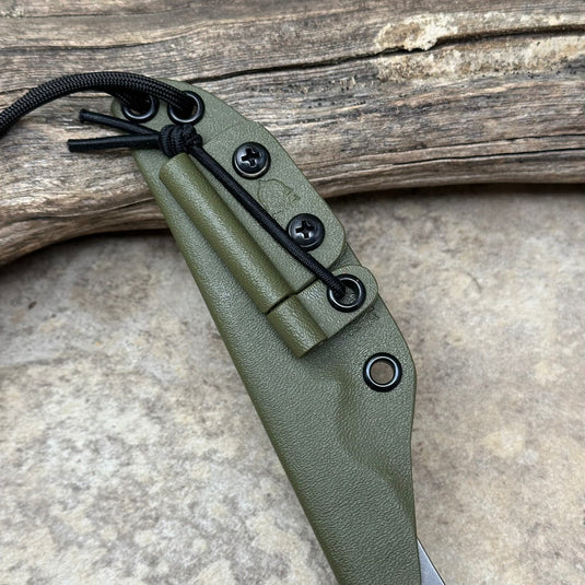 The sheath can be upgraded with a firesteel attachment, a pocket clip and is also compatible with The Orford Parang / Pocket Parang via a Bolt On Kit.