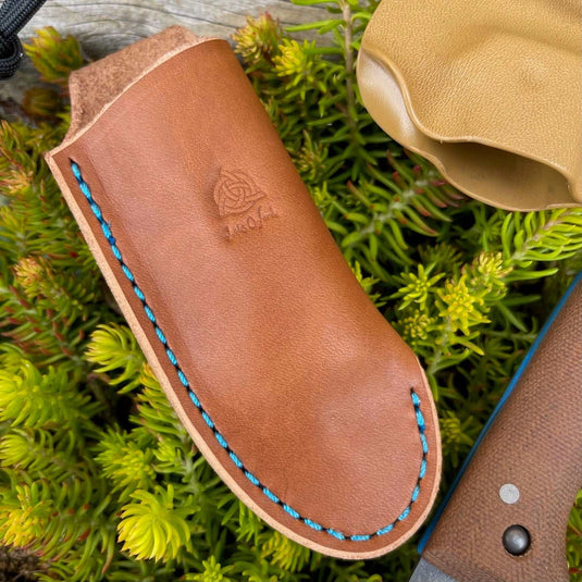 You can also add a Coyote brown leather belt sheath with striking blue stitching to match your Ed Stafford Nomad if you would like to be able to wear it on your belt for easy access when out and about.
