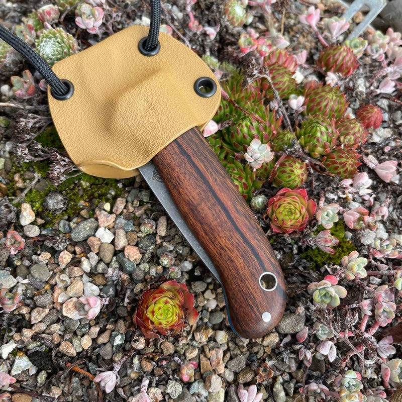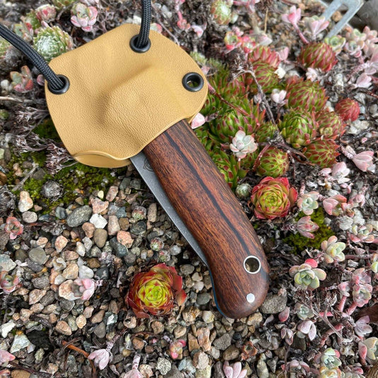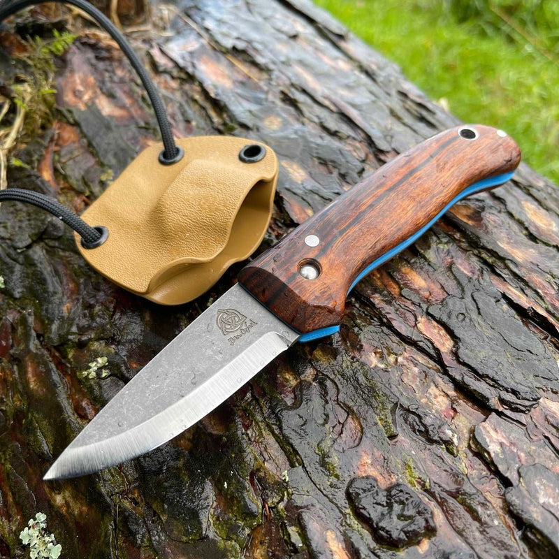 It comes with a Coyote brown kydex neck sheath with a adjustable neck cord made from black 550 Paracord for a great hard use sheath that will lock the knife in place totally securely even in the most extreme use or environment around the globe.